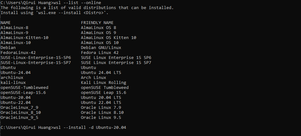 In Windows Terminal, you can use the command wsl -l to check all installed Linux distributions.