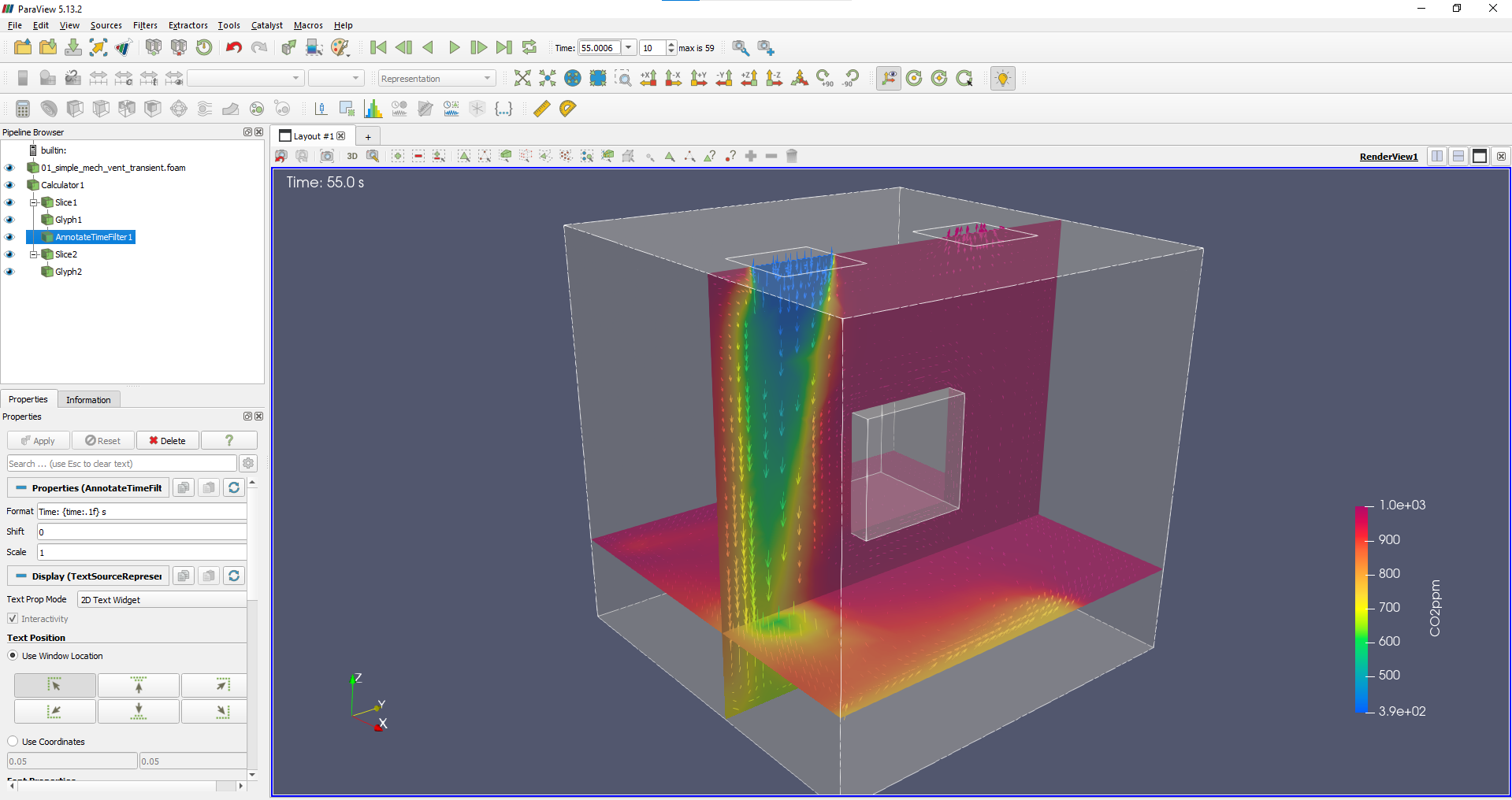 After simulation, simply double-click the automatically generated .foam file in the Carbonfly case folder (see Examples) to open ParaView and view simulation results for post-processing: